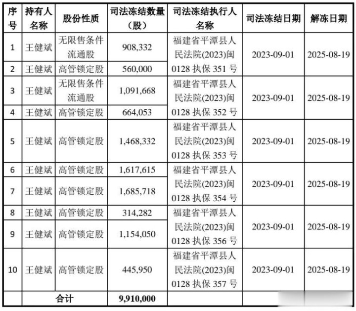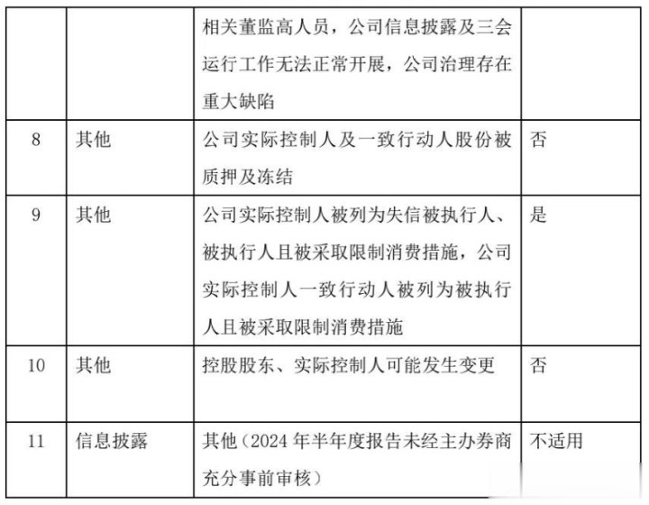公司本色抵制东谈主王健斌已被列为失信被推论东谈主并被规矩耗尽,其一致活动东谈主也濒临不异问题。他们捏有的公司股份已被大面积质押和冻结,存在被强制推论的可能,导致公司控股鼓励、本色抵制东谈主可能发生变更。