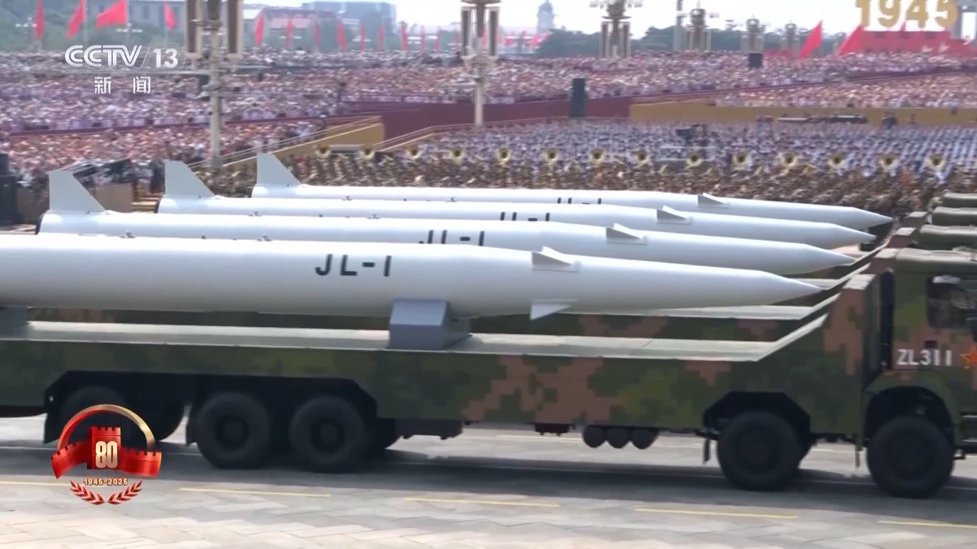 总台央视记者 王晓丹:精熟声速导弹方队由多兵种和洽构成,在我身边的即是这次受阅的鹰击-21、东风-17、东风-26D导弹,齐是精熟声速导弹刀兵眷属的紧要力量,连结展现了我军精熟声速精准打击智力。